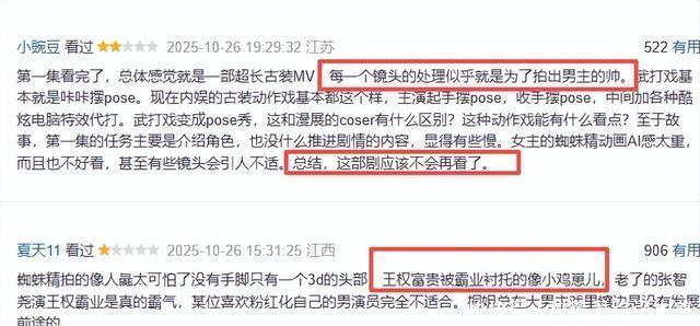 市场满意度也跌到42%。 观众吐槽最多的就是"剧情套路化""演技模板化""特效廉价化"。